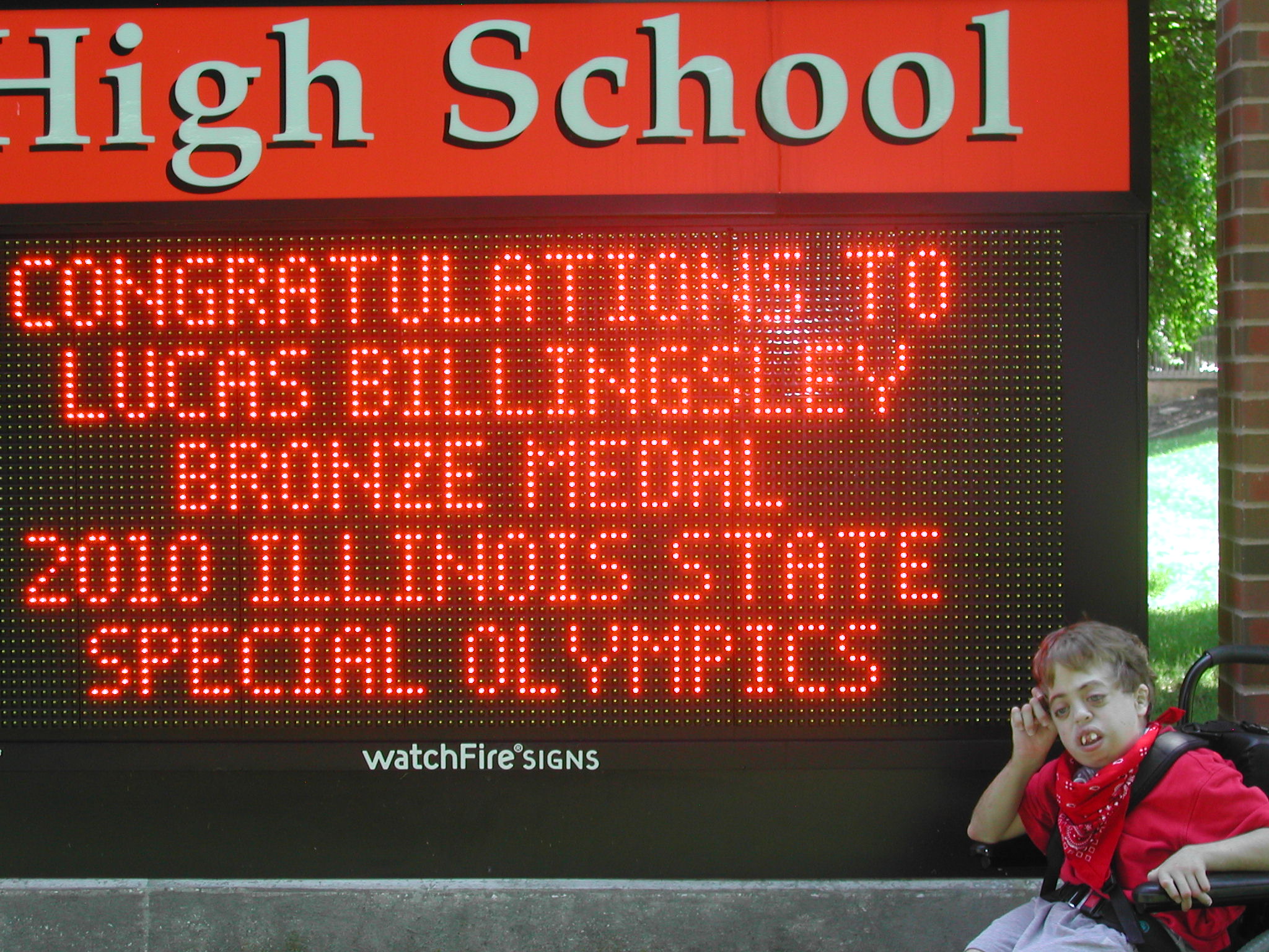 Lucas Billingsley was a one of a kind person. Lucas participated in the Illinois Special Olympics. He competed in the tennis ball throw, similar to the shot-put. He won a silver medal in 2009 and a bronze medal in 2010. Lucas was an ambassador of the Special Olympics to the area elementary schools. Unfortunately his life was cut short on Wednesday, January six.