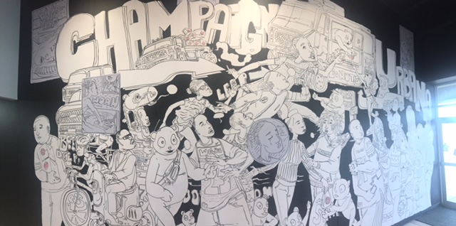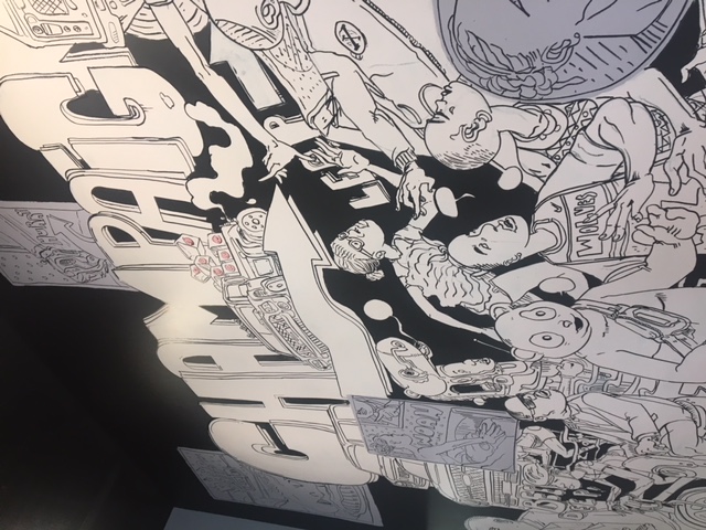 This is the same local artist whose work is also on the Sipyard and Pizza M, Langston Allston! He compliments the coffee shop perfectly by having the mural black and white with splashes of pink. With different pandas found everywhere in the mural, it’s just so cute!