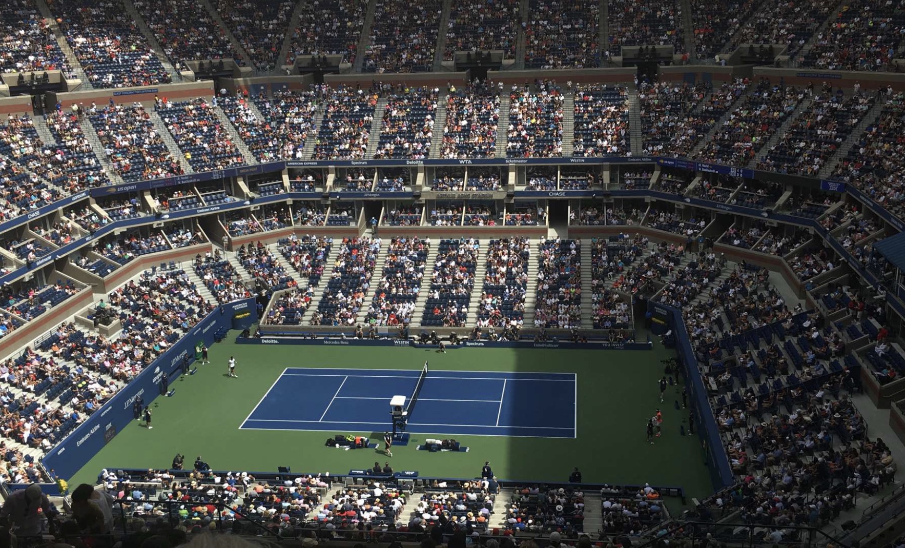 As the match wrapped up, the bigger matches were beginning in Arthur Ashe stadium, with Nadal playing first, followed by Serena Williams.