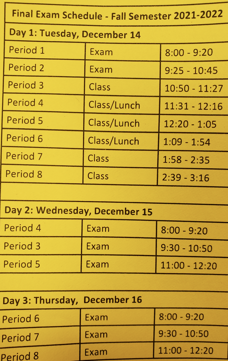 Like them or not, finals will begin tomorrow. Need help getting around? See below for the schedule for this week.