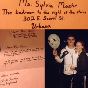 Nick Amaya asked Sylvia Maehr to Homecoming this week by using ideas from her favorite book, "Harry Potter". Nick wrote her...
