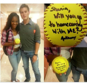 Anthony Watson asked Shania Williams using a custom made softball with a cute message on it!